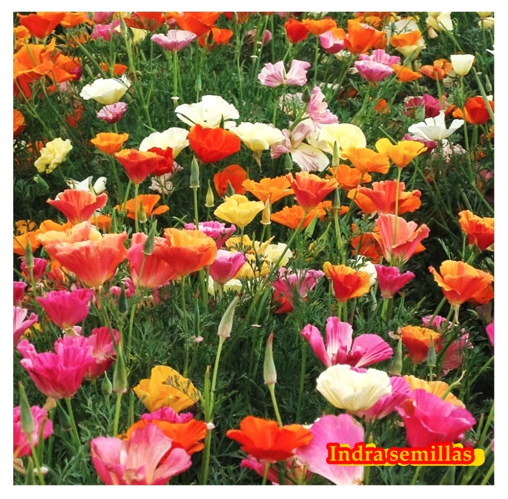'Mission Bells' con sus deslumbrantes flores con volantes dobles y semidobles en forma de platillo, rosa brillante, rojo, naranja, blanco y amarillo, es el epítome del verano en una alfombra de color. Una planta tolerante al calor y a la sequía que requiere pocos cuidados, se sembrará por sí misma, proporcionando años de belleza.
