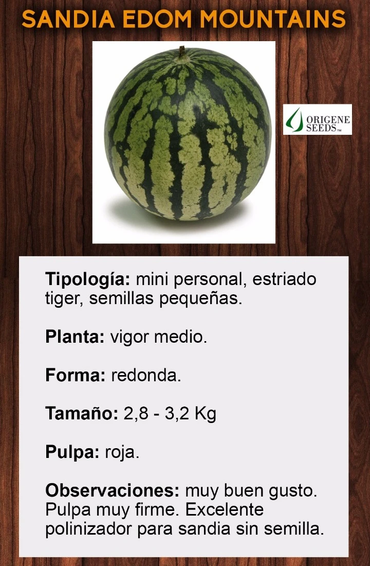 OBSERVACIONES: Muy buen gusto,pulpa muy firme,excelente polinizador para sandia sin semillas.